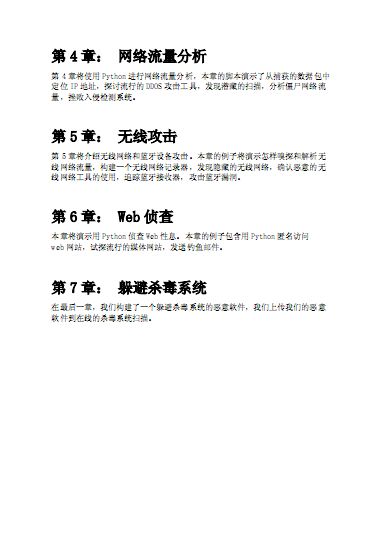 1.结合具体的场景和真实的案例,详述了Python在渗透测试、电子取证、网络流量分析、无线安全、网站中信息的自动抓取、 病毒免杀等领域内所发挥的巨大作用