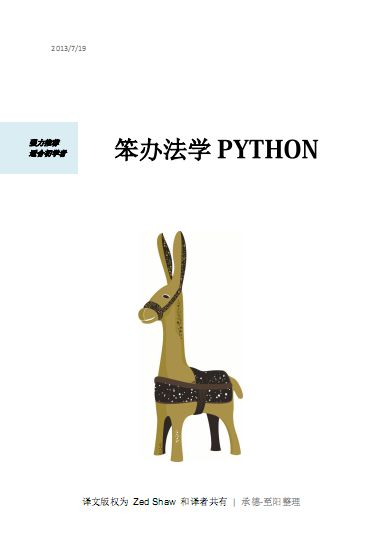 《笨办法学 Python》第三版(Learn Python The Hard Way,简称 LPTHW)是 Zed Shaw 编写的一本Python 入门书籍。适合对计算机了解不多,没有学过编程,但对编程感兴趣的朋友学习使用。这本书以习题的方式引导读者一步一步学习编程,从简单的打印一直讲到完整项目的实现。也许读完这本书并不意味着你已经学会了编程,但至少你会对编程语言以及编程这个行业有一个初步的了解。