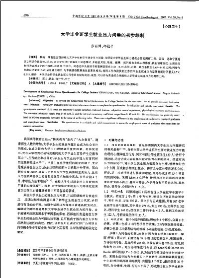 Development of Employment Stress Questionnaire for College Seniors/ZHANG Li-jin, QIU Gui-ping. School of Educational Science, Ningxia University, Yinchuan(750021), China