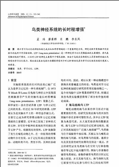 关键词 鸟类,学习记忆,LTP。