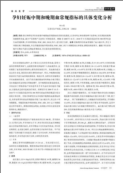 孕妇妊娠中期和晚期血常规指标的具体变化分析