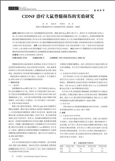 [关键词] CNDF;大鼠脊髓损伤;实验研究