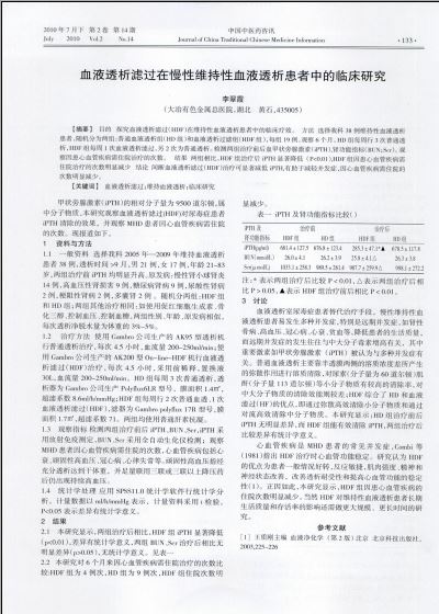 血液透析滤过在慢性维持性血液透析患者中的临床研究