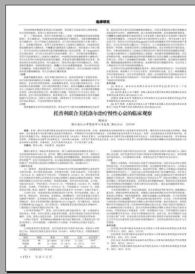 托普利联合美托洛尔治疗慢性心衰的临床观察